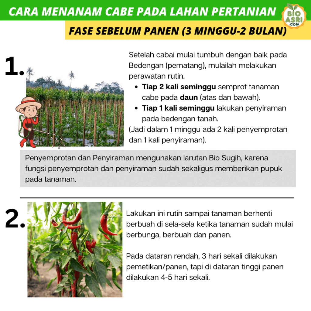 Tiap 2 kali seminggu semprot tanaman cabe pada daun (atas dan bawah).