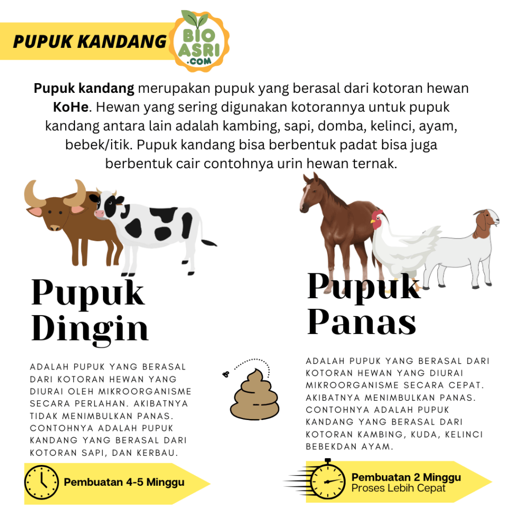 Pupuk kandang merupakan pupuk yang berasal dari kotoran hewan KoHe. Hewan yang sering digunakan kotorannya untuk pupuk kandang antara lain adalah kambing, sapi, domba, kelinci, ayam, bebek/itik. Pupuk kandang bisa berbentuk padat bisa juga berbentuk cair contohnya urin hewan ternak.