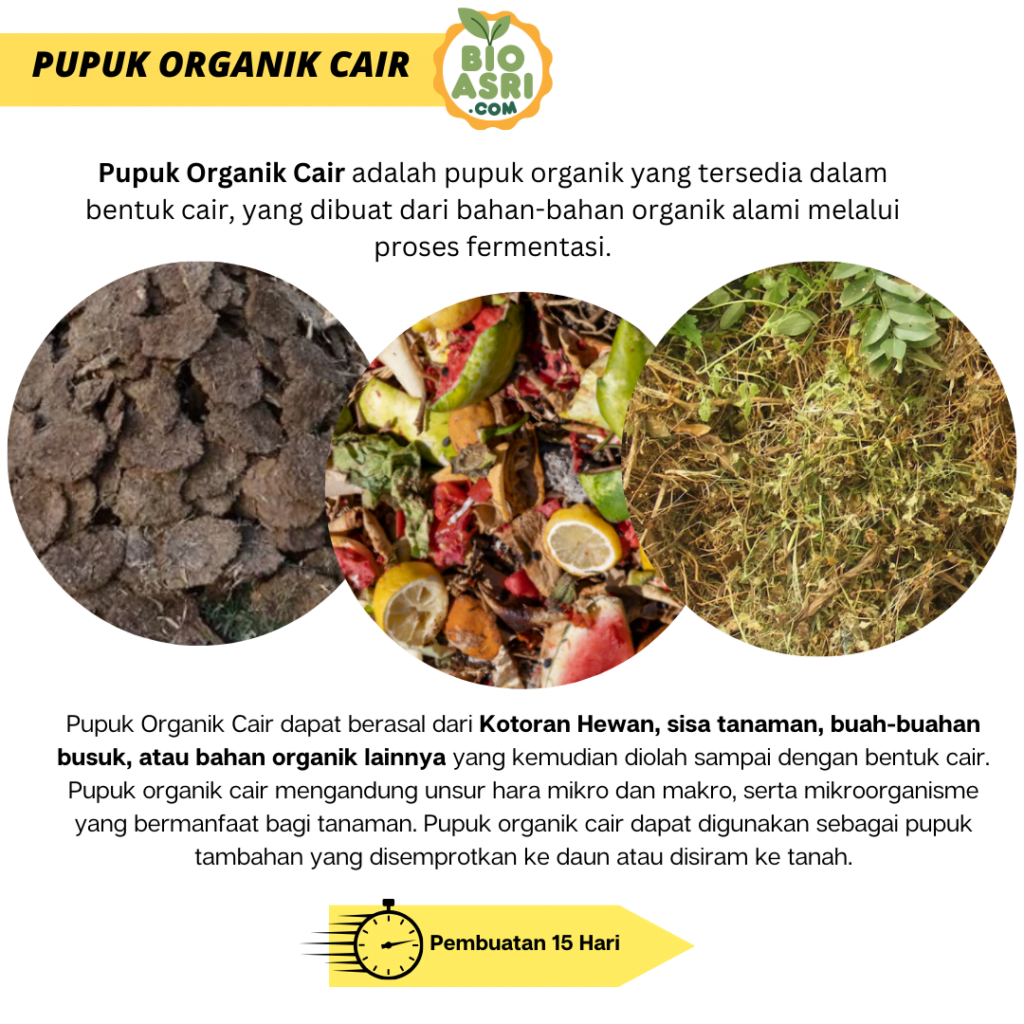 Pupuk Organik Cair (POC) adalah salah satu jenis pupuk organik yang tersedia dalam bentuk cair. POC dapat diartikan sebagai pupuk yang dibuat secara alami melalui proses fermentasi sehingga menghasilkan larutan hasil pembusukan dari sisa tanaman, sumber protein seperti ikan, kotoran hewan.