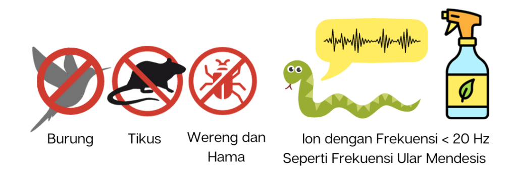 - Mampu mengusir berbagai jenis Hama, Ulat, Tikus, Burung yang menggangu tanaman, tanpa meninggalkan residu insektisida/kimia.