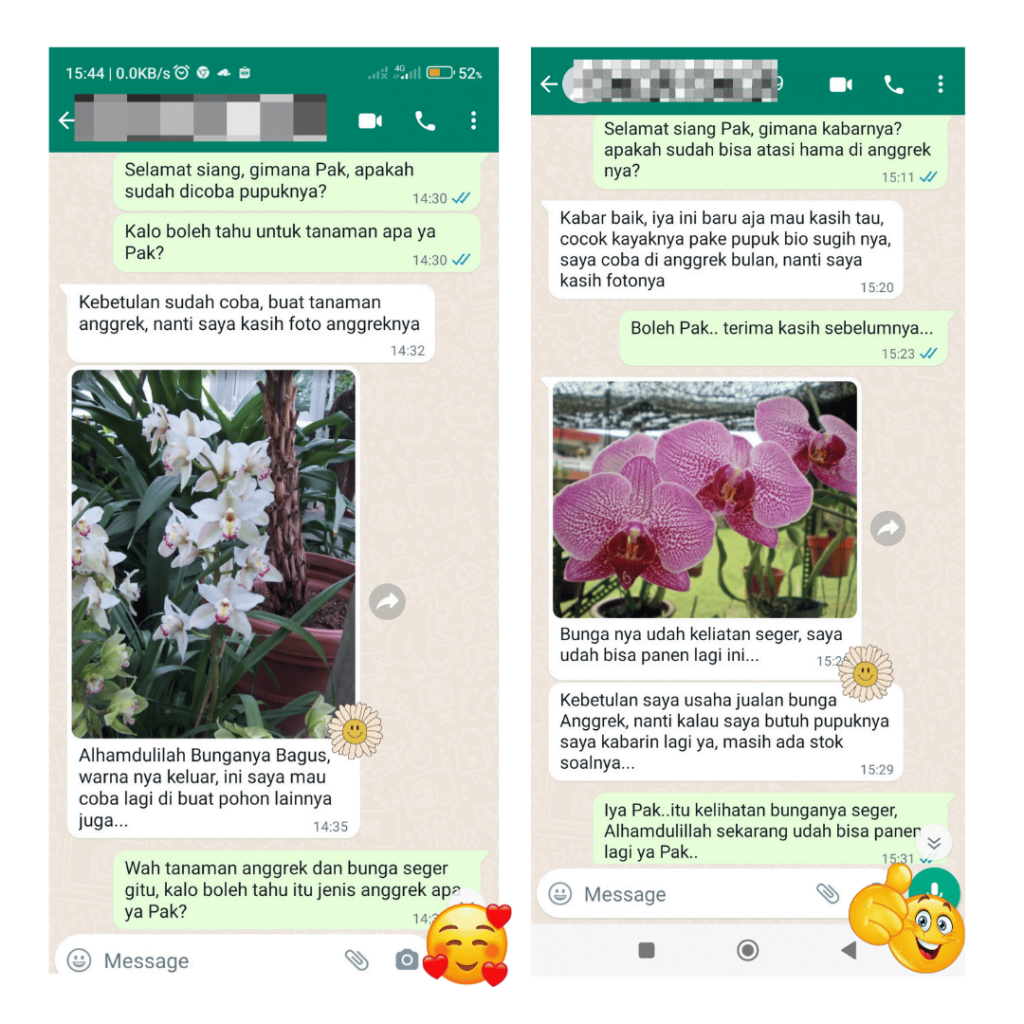 Berikut ini adalah testimonial langsung dari WA pelanggan yang sudah membeli dan menggunakan Pupuk Bio Sugih 3 in 1